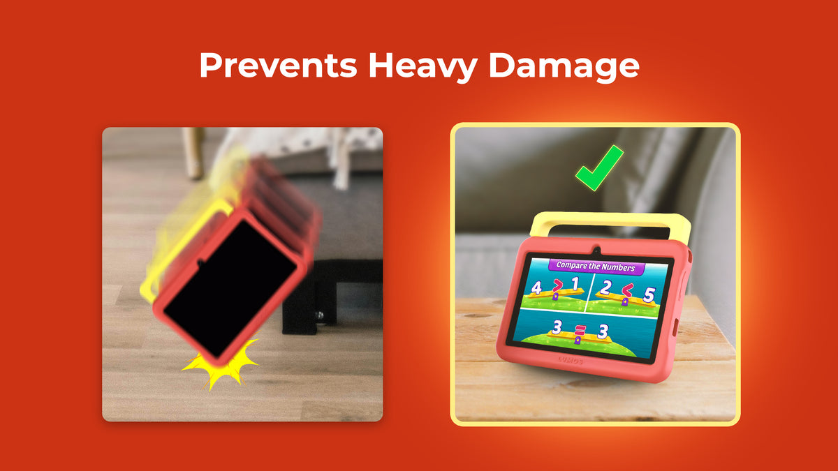 No more fears of your child accidentally dropping tablets and spoiling them. With a drop protection design, the rubber frame absorbs impact and prevents heavy damage on the tablet. Absolute peace of mind.